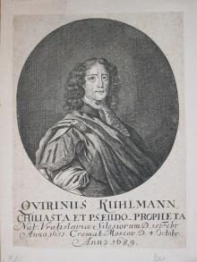 ![]() Квири́н(ус) Ку́льман (нем. Quirinus Kuhlmann, также Culmannus, Kühlmann, Kuhlman; 25 февраля 1651, Бреслау (ныне Вроцлав) — 4 октября 1689, Москва) — немецкий мистик, писатель и поэт. Показывать: |
