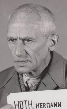 ![]() Ге́рман Гот (нем. Hermann Hoth; 12 апреля 1885, Нойруппин — 25 января 1971, Гослар) — германский военачальник, генерал-полковник. Принимал участие в кампаниях Второй мировой войны, известный победами во Франции и на Восточном фронте. Командовал 3-й танковой группой вермахта в составе группы армий «Центр» (с июня 1941 по июнь 1942 года) и 4-й танковой армией (с июня 1942 года по декабрь 1943 года). После поражения Германии был осуждён Нюрнбергским трибуналом и приговорён к 15 годам лишения свободы. Показывать: |